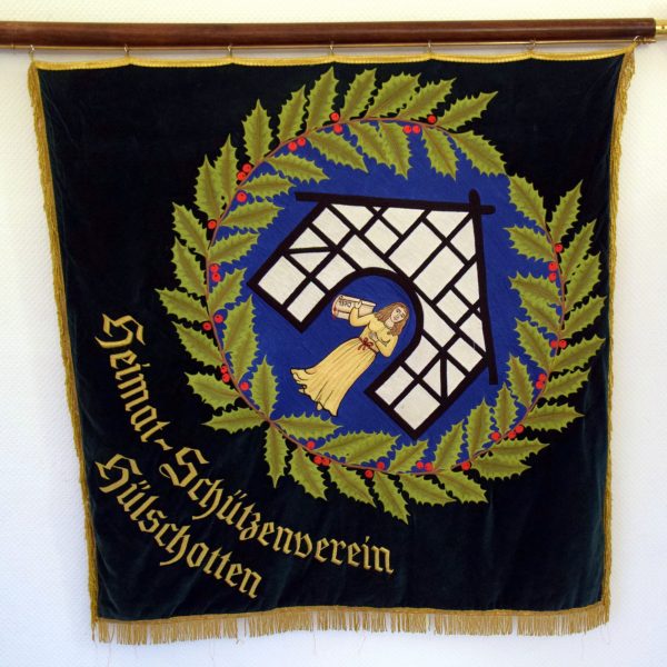 Die andere Zeit seit einen grünen Ilex-Kranz mit roten Früchten, welcher ein Fachwerkhaus auf blauem Grund umrahmt. In dem Tor des Hauses steht eine goldene Jutta mit der Urkunde in der Hand, auf dieser steht die Zahl „1370“ als Erinnerung an die erste urkundliche Erwähnung Hülschottens. Durch diese Fahne ist das alte Logo des Schützenvereins überhaupt erst entstanden. Das Logo befindet sich auf samtgrünem Grund. Unterhalb des Logos befindet sich der Schriftzug „Heimat-Schützenverein Hülschotten“.