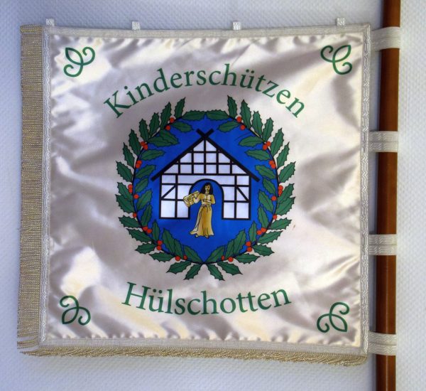Das Heimat-Schützenverein führt drei offizielle Fahnen. Die kleinsten des Vereins, die Kinder, haben seit 2019 eine neue Standarte, die sie stolz vor dem Kinderkönigspaar tragen. Die erste Fahne der Kinderschützen wurde 1983 in mühevoller Handarbeit von Vera Schulte genäht und gestrickt. Mittlerweile sucht die alt-ehrwürdige Fahne aber noch einen präsentablen Platz für die Zukunft.